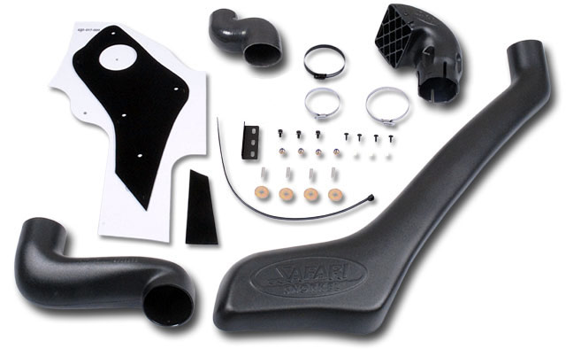 Шноркельна система Safari поставляється як повністю готовий до встановлення продукт і включає всі гайки, болти, кронштейни і перехідники, необхідні для встановлення. Все металеве кріплення виконане з нержавіючої сталі.